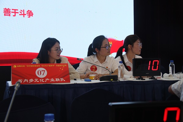 這次知識競賽以習近平新時代中國特色社會主義思想、黨的二十大報告等為主要內容。試題將黨的歷史、時事政治、熱點新聞、企業經營發展成果、形勢政策教育等嵌入其中,以視頻題、音頻題、識圖排序題、推理題等呈現,特別是通過場上場下聯動,讓比賽既是參賽選手的同臺競技,又是給觀賽人員開展了一場沉浸式的黨課教育。