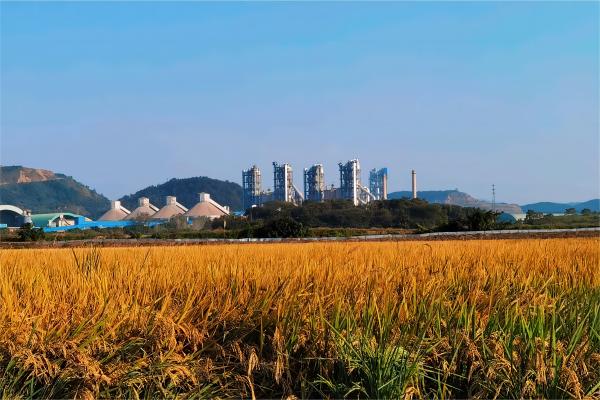 豐收黃,為海螺之秋增添了喜悅的顏色。金燦燦的稻谷,迎著秋風吹起稻浪,遠遠望去就像一片金色的海洋,與鱗次櫛比的海螺工廠遙相呼應,莊重的海螺紅點綴其中,勾勒出一幅工業與農業文明相互交融的現代田園風光。