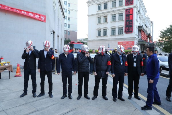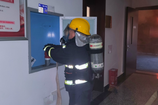 安徽蕪湖,海螺水泥部室員工認真參與火災事故應急演練,鏡湖區消防救援大隊的消防員現場向大家講解過濾式自救呼吸器、緩降器、消火栓等應急器材的使用方法。
