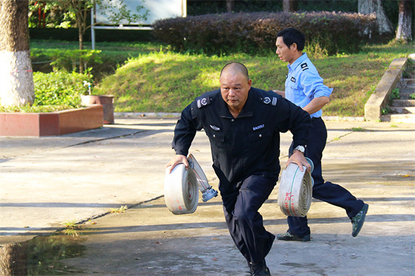 廣東英德海螺組織各部門消防安全員開展消防技能大比武活動,檢驗應急處突的實戰能力。