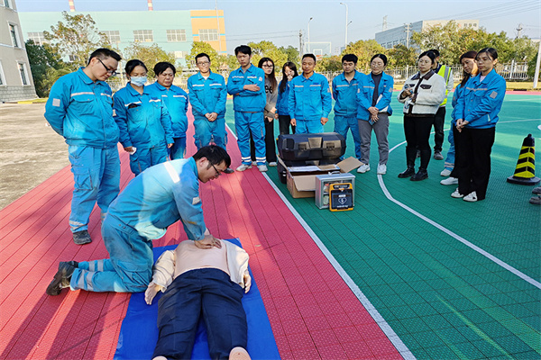 浙江象山海螺組織員工學習心肺復蘇、人工呼吸等急救知識,并以實操的形式示范規范動作要領。