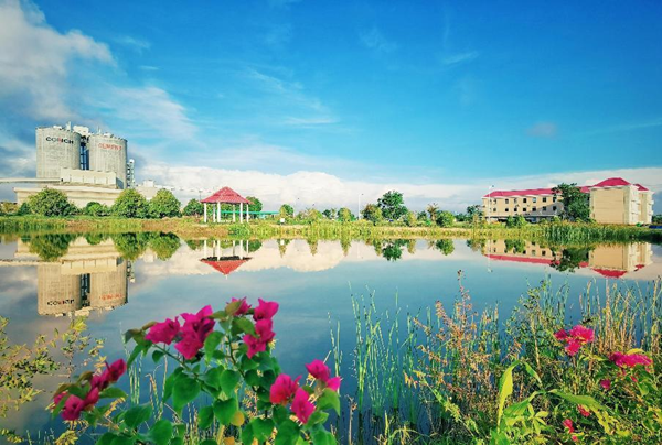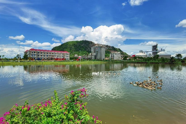 走進馬德望海螺廠區,綠水環繞,青山相倚,花草掩映成趣,人工湖埂和綠植共同組成的“CONCH”標志在衛星圖中也十分明顯,巧妙的設計使得自然和人文景觀相融極具特色,湖中成群的野鴨游過,一幅人與自然和諧共生的美麗畫卷徐徐展開。