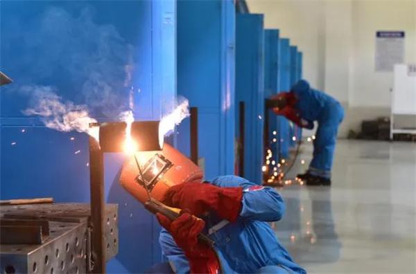 在焊工比賽現場,焊花飛舞、弧光閃耀,在“鋼鐵裁縫”的焊槍下,工件被嚴絲合縫地焊接成型。