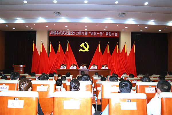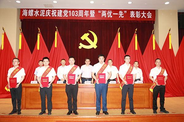 6月27日下午,海螺水泥以現場會+視頻會相結合的方式,召開了慶祝建黨103周年暨“兩優一先”表彰大會,隆重表彰了一批在推動公司高質量發展中涌現出的先進集體和優秀個人,激勵廣大黨員和干部職工堅定信心、攻堅克難,為完成年度目標任務,助推集團實現新“雙一”目標貢獻更大力量。
