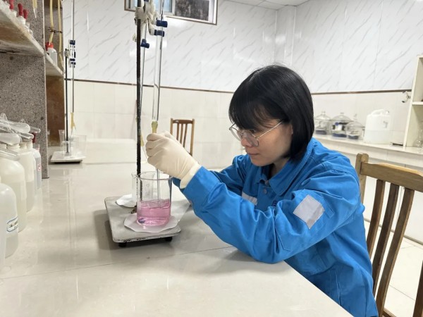 佛山海螺質控處陳淑芳在測進廠熟料CaO含量,她說:“在這沖刺的關鍵時分,以精準為尺,度量每一絲偏差,不讓點滴疏漏過關,用優質的產品為全年畫上圓滿的句號。”