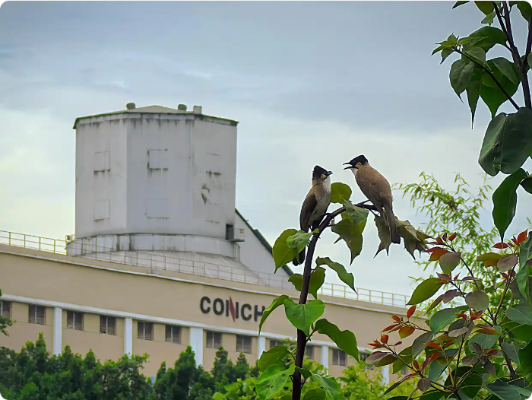 在重慶海螺水泥有限責任公司,鳥兒在廠區內的綠植上嬉戲。新華社記者 唐奕 攝