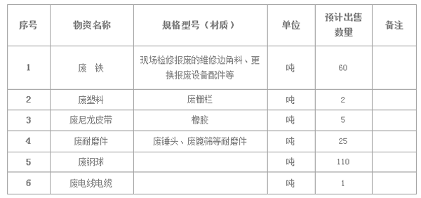 根據公司現場實際情況,本著“公開、公平、公正、誠實信用和競爭、擇優”原則,濟寧海螺水泥有限責任公司擬開展廢舊物資公開招標,歡迎具備條件的單位參加,現將有關事項公示如下: