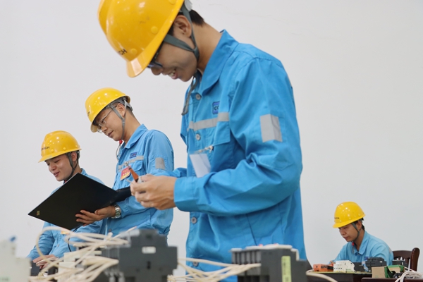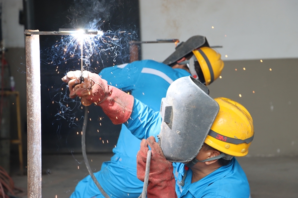 比武現場氣氛緊張熱烈,參賽選手全神貫注,各顯神通,紛紛“曬”出看家本領。在機械操作項目賽區,焊工選手們嚴守安全操作規程,穿戴好勞動防護用品,半蹲或半跪在地上,屏氣凝神,左手穩穩把住面罩,右手精準操作焊槍,在焊條與金屬碰撞的瞬間,迸發出千萬點燦爛金花。另一邊,鉗工選手正站在操作臺前,身體微微前傾,細心打磨著自己的“得意之作”。品質賽區的選手們也專注地投入在檢測操作當中,從稱量到校準全程精益求精,以近乎嚴苛的標準把控每個細節,操作流程規范流暢,充分展現了質檢人的專業素養。電氣賽區的選手們也不甘示弱,一個個化身為電流世界的“指揮官”,接線布置認真細致,PLC編程操作行云流水,贏得聲聲贊嘆!