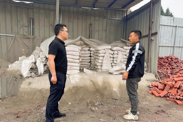 銷售處市場部業務員張力林正在拜訪水泥客戶,摸排和了解當前市場水泥需求,兩人身后堆滿的海螺牌水泥,交錯的影子投射在水泥袋上,勾勒出合作無間的默契。(李云/攝)