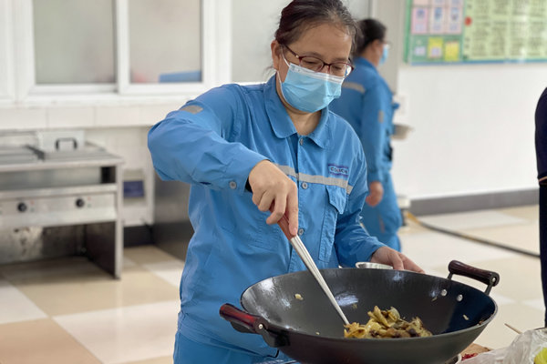 與此同時(shí),來(lái)自各部門(mén)的員工隊(duì)伍也迅速“接棒”。團(tuán)隊(duì)成員分工明確、配合默契——有人刀工利落嫻熟;有人全神貫注調(diào)味烹飪,讓酸菜魚(yú)的鮮香、三生三世連緣湯的醇厚在鍋中慢慢綻放;還有人化身擺盤(pán)高手,將鳳凰展彩堂、財(cái)源滾滾來(lái)等菜品精心裝點(diǎn)。不一會(huì)兒,食堂里便升騰起裊裊煙火氣,混合著糖醋、麻辣、鮮香等多重香味,將比賽氛圍推向高潮。