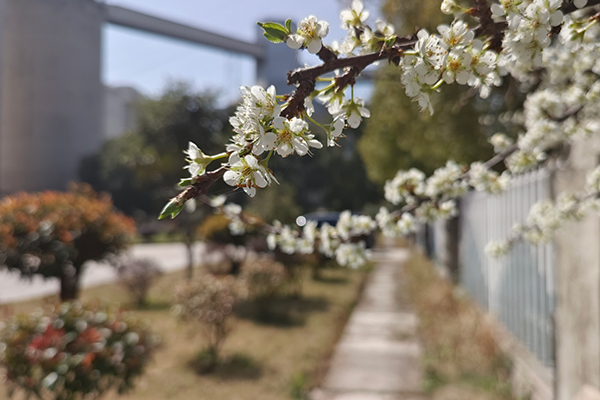 春日的暖陽斜斜地鋪在碼頭廠區的鐵柵欄上,幾枝白桃花從青灰色的磚墻上探出。江邊貨輪的汽笛聲里,裹著若有若無的香氣,把金屬與混凝土的世界,釀成了春天的模樣。