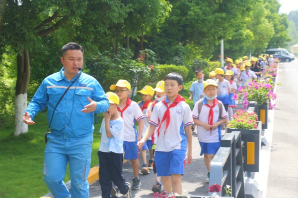 “老師,這個公司好大呀!”“我媽媽就在這里上班,等會我就能見到她。”……周六的早上,寧靜的達州海螺廠區因一群孩子的嬉笑聲、交談聲而變得熱鬧了起來。當天,大竹縣第一小學40多名師生走進達州海螺,開啟探秘海螺水泥智能制造和綠色發展之旅。