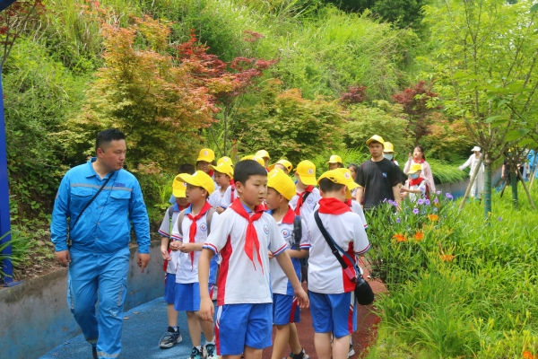 現場參觀結束后,孩子們沿著環湖跑道奔跑嬉戲。跑道兩側綠樹成蔭、花草相伴,藍天白云、工廠建筑倒映在水里交織形成工業畫卷,顯得十分壯美。“爸爸,這里環境好美,湖面上還有好多好大的魚在喝水……”“老師,這個公園好漂亮,下次我們能在這露營嗎?”小朋友們用稚嫩、樸實的話,為達州海螺生態環境點贊。