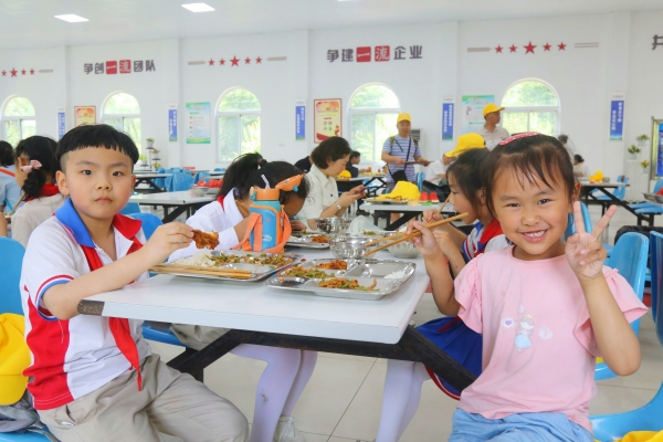 午餐時分,達州海螺為孩子們準備了可口的飯菜和水果,并一起進行了“光盤行動”。