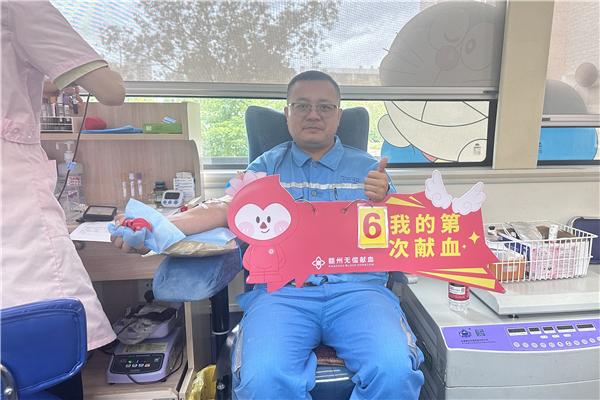 已是第六次獻血的窯操作員付銀平笑著說:“能通過獻血幫助他人,既光榮又有意義,公司組織這樣的活動,讓我們感受到‘舉手之勞也能傳遞大溫暖’。”?
