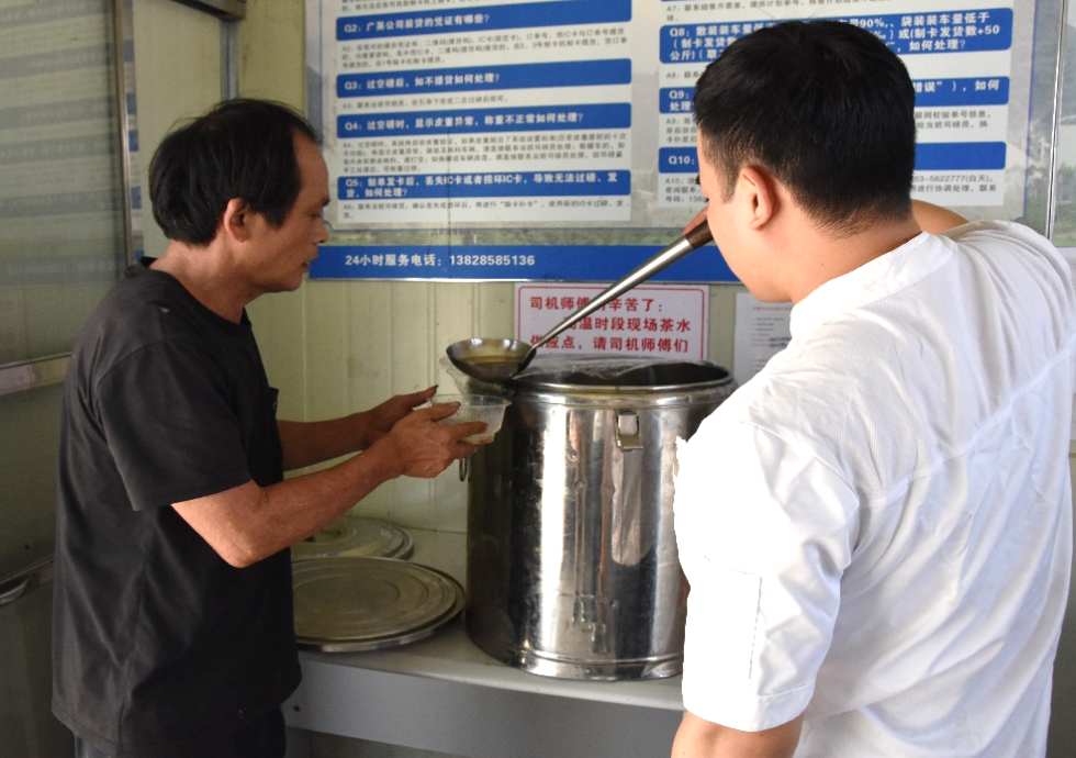 二線發(fā)運(yùn)廣場(chǎng)上,貨運(yùn)司機(jī)們駕著車輛往來(lái)穿梭,九月陽(yáng)光把駕駛室烤得像“蒸籠”。公司特意在制卡房設(shè)“清涼供應(yīng)點(diǎn)”,工作人員持長(zhǎng)勺為休整的司機(jī)舀上滿滿的一碗清熱綠豆湯。“跑長(zhǎng)途最怕熱天,這兒隨時(shí)都能享受到公司的夏日關(guān)懷,太貼心了!”剛結(jié)束運(yùn)輸?shù)膹垘煾到舆^(guò)綠豆湯不住夸贊。小小的制卡房,成了司機(jī)們的“清涼港灣”,讓奔波的物流崗位也被關(guān)懷緊緊包裹。