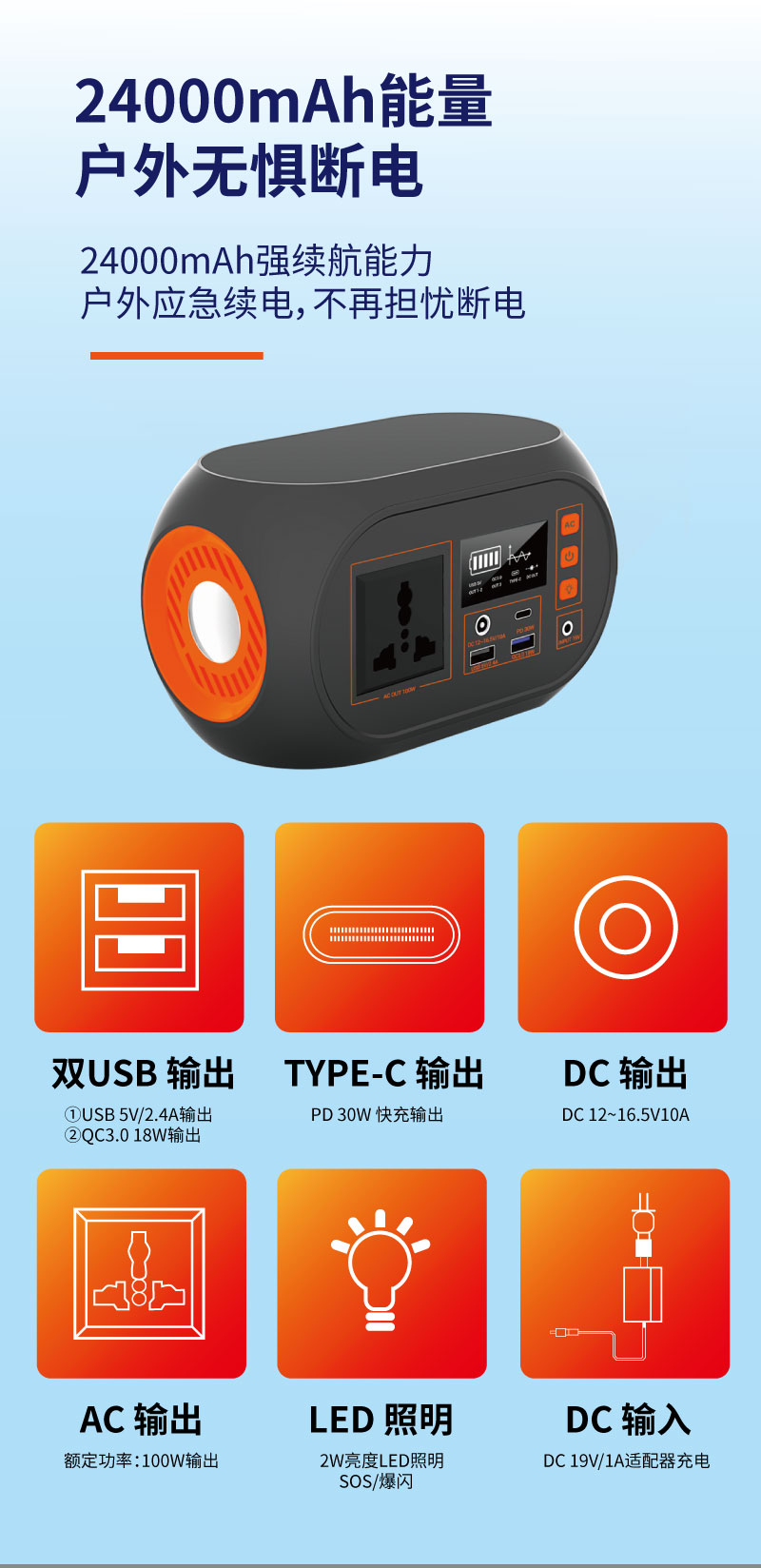 小容量戶(hù)外便攜應(yīng)急移動(dòng)電源100W手機(jī)平板多功能儲(chǔ)能電源工廠(chǎng)批發(fā)