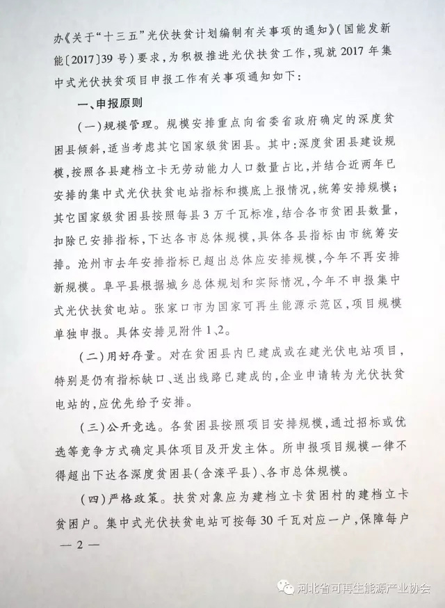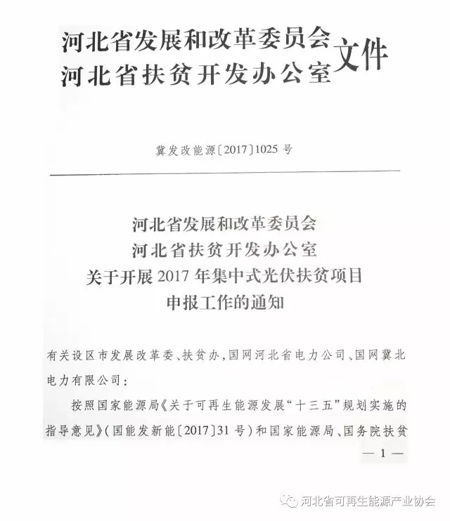 河北開展2017年集中式光伏扶貧項(xiàng)目申報(bào)工作 總規(guī)模1GW